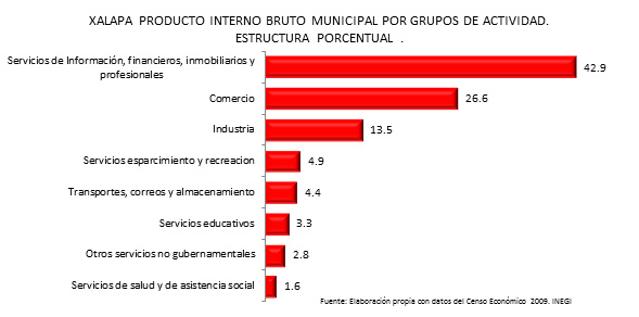 Xalapa es una de las economías municipales más grandes del estado, caracterizada por una gran actividad derivada de la prestación de servicios de distinta naturaleza y una intensa actividad comercial, lo que ha propiciado la conformación de un importante espacio regional de actividad económica.