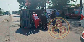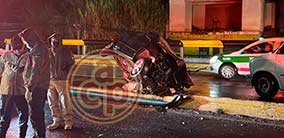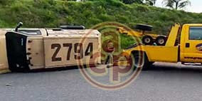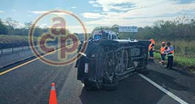 Camioneta vuelca tras salirse del camino en curva, en Emiliano Zapata - El chofer habría perdido el control por ir a gran velocidad, en la carretera Xalapa-Veracruz |