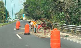 | En vez de construir el muro que daría solidez a la carretera, en el sinuoso y empinado tramo de Banderilla a Jilotepec, las autoridades optaron por señalizar el socavón, por donde transitan unidades pesadas, como tráileres y autobuses llenos de gente hacia Naolinco y la sierra de Misantla. Quizás esperan a que un derrumbe impida totalmente el paso. | |||||||||||