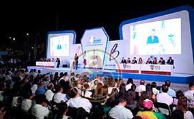 | Xalapa, Ver., 24 de noviembre de 2024.- Con 2,700 bailadoras y bailadores folklóricos, llegados de municipios de toda la geografía estatal y de otras entidades de la República, la Universidad Veracruzana cumplió este domingo con la Séptima Edición del Reto La Bamba en el corazón de la ciudad, conducido por el grupo Tlen Huicani del maestro Alberto de la Rosa. | |||||||||||
