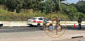 Medellín de Bravo, Ver., 5 de diciembre de 2025.- En la carretera Playa de Vacas-Medellín de Bravo, camioneta cayó al río Jamapa. Según el conductor, falla mecánica lo hizo perder el control e intentó esquivar a una persona, ocasionando se fuera hacia el agua. |