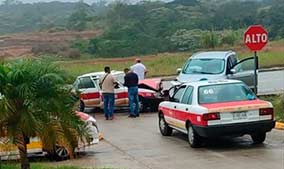 Aparatoso choque en carretera Sayula de Alemán-La Tinaja deja varios lesionados Auto particular presuntamente invadió el carril contrario e impactó de frente a un taxi Edgar Hernández |