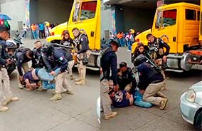 Xalapa, Ver., 12 de diciembre de 2025.- En video quedó captado cómo una mujer policía municipal le roció aparentemente gas pimienta en el rostro al hombre que fue detenido en la avenida Chedraui Caram. El sujeto ya estaba esposado en una patrulla. Tras lo ocurrido, la oficial terminó por cubrirse el rostro. |