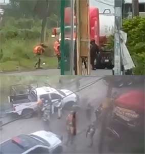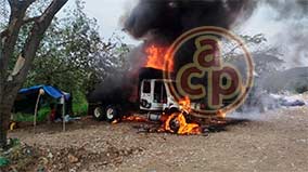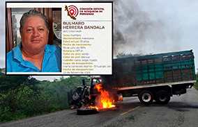 | Según reportes difundidos en redes sociales, el camión tipo Torton Dina color verde que conducía Bulmaro habría sido robado y posteriormente utilizado para bloquear e incendiar vialidades entre los municipios de Álamo Temapache y Martínez de la Torre el pasado 22 de febrero | ||||
