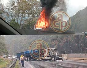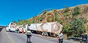 Casi al mismo tiempo, dos tráileres se accidentaron este viernes en Cumbres de Maltrata - Primero, entre la caseta de Esperanza y Mendoza, tractocamión que transportaba huevos volcó en curva; hubo rapiña |