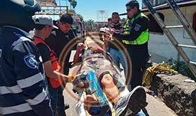 Xalapa, Ver., 26 de febrero de 2026.- Mujer de la tercera edad resbaló en la calle Revolución. Fue atendida por paramédicos de la Cruz Roja. |