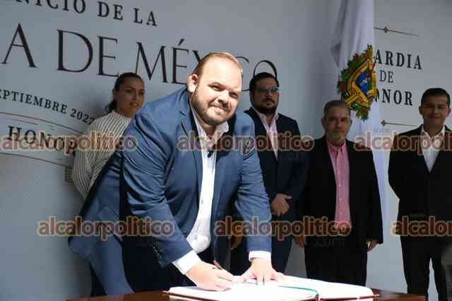 Xalapa, Ver., 22 de septiembre de 2022. Dirigentes y militantes de los partidos Movimiento Ciudadano (MC), del Trabajo (PT) y Fuerza por México, asistieron este jueves a las guardias de honor ante el monumento al Padre de la Patria en el parque Los Berros.