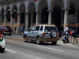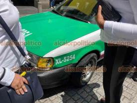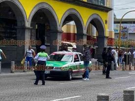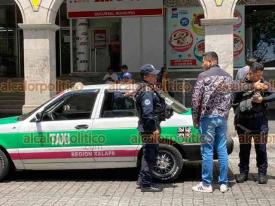 Xalapa, Ver., 14 de septiembre de 2023.- Policías estatales y elementos de Tránsito interceptaron al conductor de una camioneta que se daba a la fuga tras chocar con taxi en la calle Enríquez.