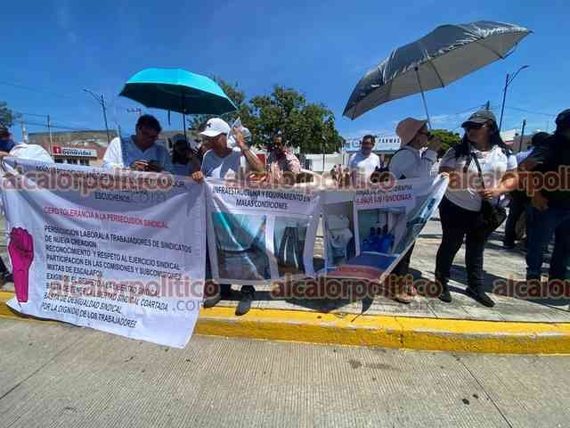 Veracruz, Ver., 28 de septiembre.- Trabajadores del ISSSTE bloquearon la avenida Díaz Mirón, frente al centro de salud; denuncian persecución sindical por parte de las autoridades. Como los derechohabientes, también piden destitución de la directora de la institución.