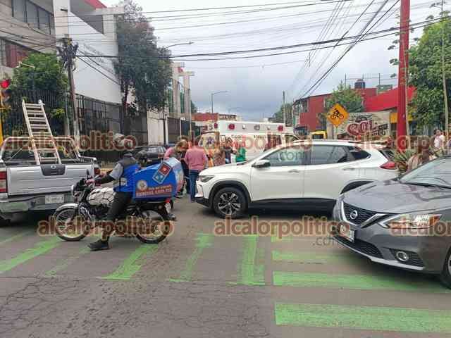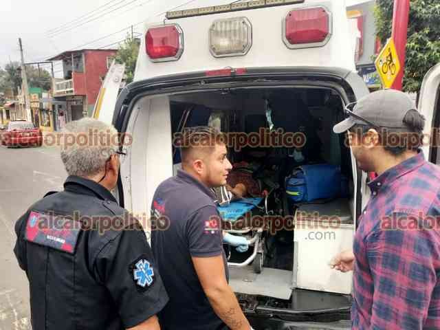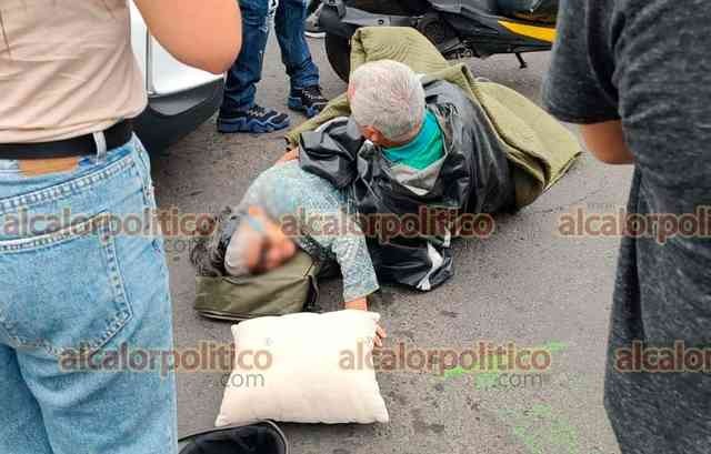 Xalapa, Ver., 28 de septiembre de 2023.- Dos adultos mayores que circulaban en motocicleta, resultaron lesionados en accidente sobre la calle Herón Proal, esquina Francisco Moreno; fueron trasladados a hospital para su atención médica.