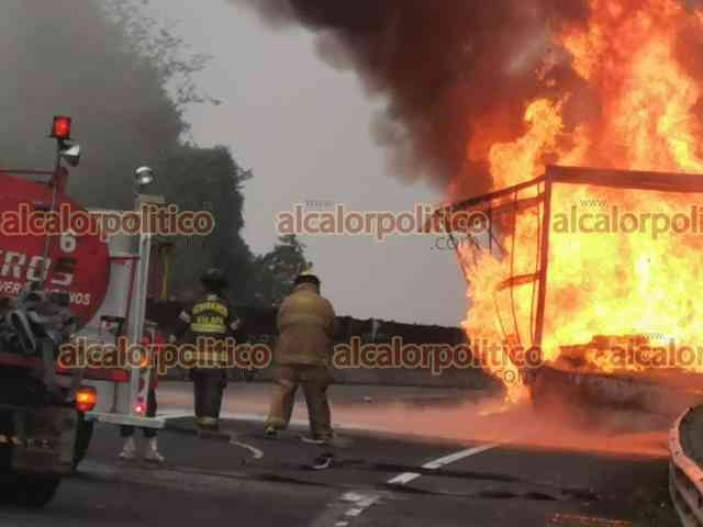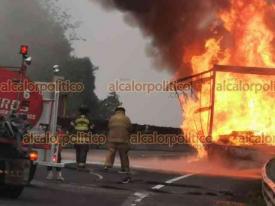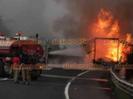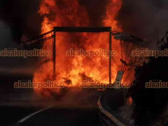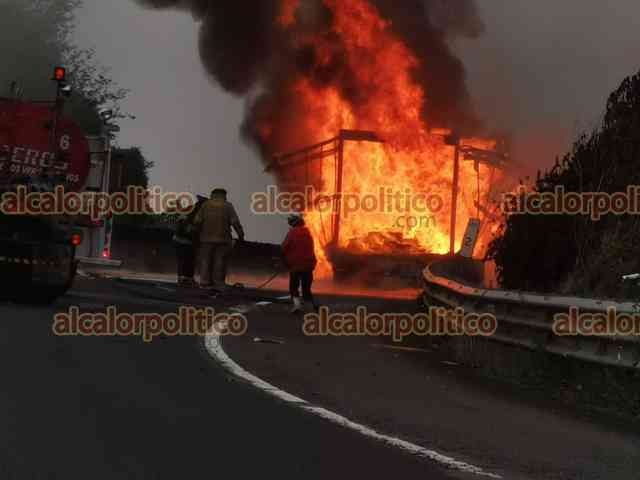 Banderilla, Ver., 29 de septiembre de 2023.- Se incendia un camión de carga en el libramiento de Xalapa, en el tramo de Banderilla-Miradores; Bomberos de la estación Norte se encuentran sofocando el fuego que consumió totalmente la unidad.