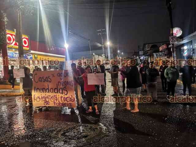 Xalapa, Ver., 29 de septiembre de 2023.- Vecinos protestaron la tarde-noche de este viernes, en la calle El Olmo de la colonia El Olmo, por Las Trancas, para denunciar que sus viviendas se inundaron a causa de una mala obra por CMAS.