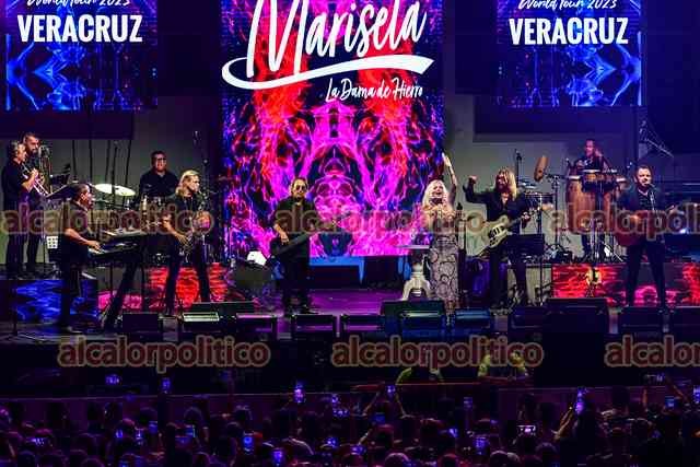 Veracruz, Ver., 30 de Septiembre 2023.- Marisela “La Dama de Hierro” se presentó la noche del viernes en el auditorio Benito Juárez, como parte del Tour mundial ¡ZAZ! Durante casi dos horas la cantante enamoró a su público con éxitos de sus 35 años de carrera.