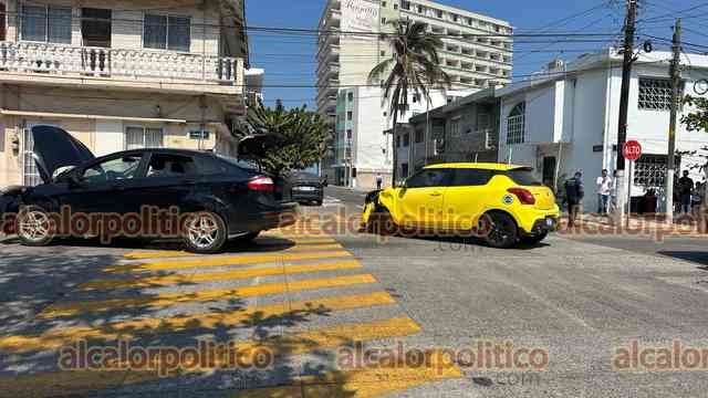 Veracruz, Ver., 12 de marzo de 2025.- Turistas provenientes de Querétaro que se dirigían a la playa impactaron a un automóvil Suzuki en el cruce de la calle Mariano Abasolo y avenida Xicoténcatl, en la colonia Flores Magón. El accidente se registró a sólo dos cuadras de la zona de playas.