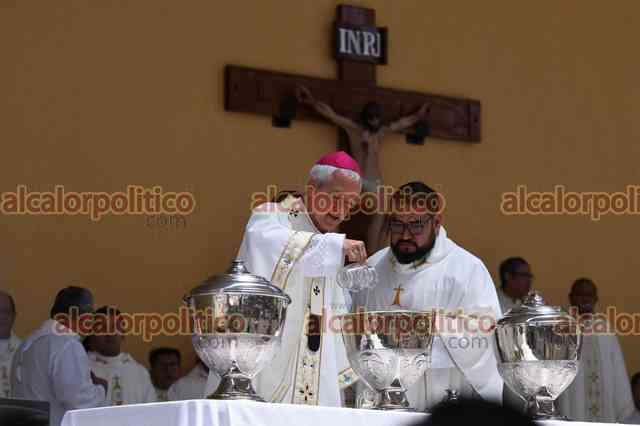Xalapa, Ver., 16 de abril de 2025.- El arzobispo Jorge Patrón Wong ofició la Santa Misa Crismal, en el auditorio “Miguel Sainz”.