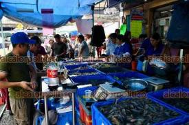 Xalapa, Ver., 17 de abril de 2025.- Gran afluencia este Jueves Santo en pescaderías de La Rotonda. La alta demanda también ha provocado un alza significativa en los precios.