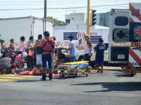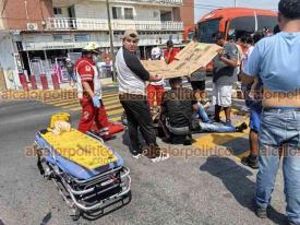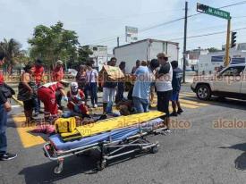 Veracruz, Ver., 17 de abril de 2025.- En la avenida Cuauhtémoc, en el Centro porteño, una camioneta de carga le pegó a pareja que iba en moto.