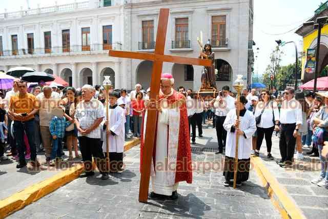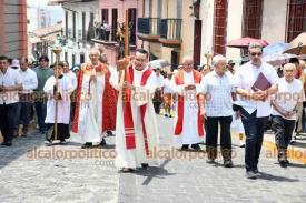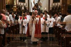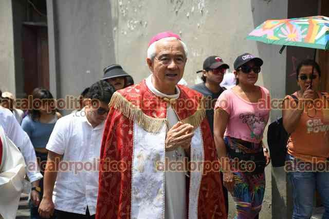 Xalapa, Ver., 18 de abril de 2025.- El arzobispo Jorge Patrón Wong encabezó el Viacrucis de la Catedral.