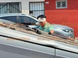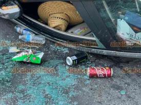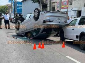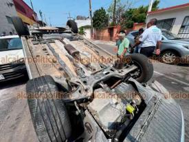 Veracruz, Ver., 24 de abril de 2025.- En la calle Mario Molina casi esquina con avenida Jiménez auto volcó tras impactar a vehículo estacionado. El conductor y su acompañante presuntamente estaban alcoholizados.
