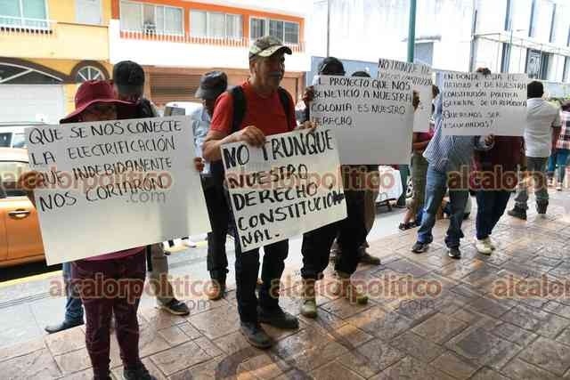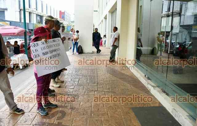 Xalapa, Ver., 25 de abril de 2025.- Habitantes de la colonia Colosio se manifestaron en las instalaciones de CFE para exigir les reconecten el servicio que no tienen desde hace más de cuatro días.