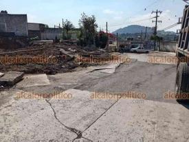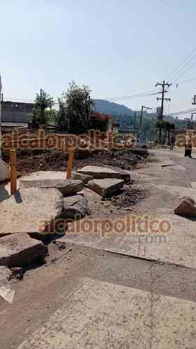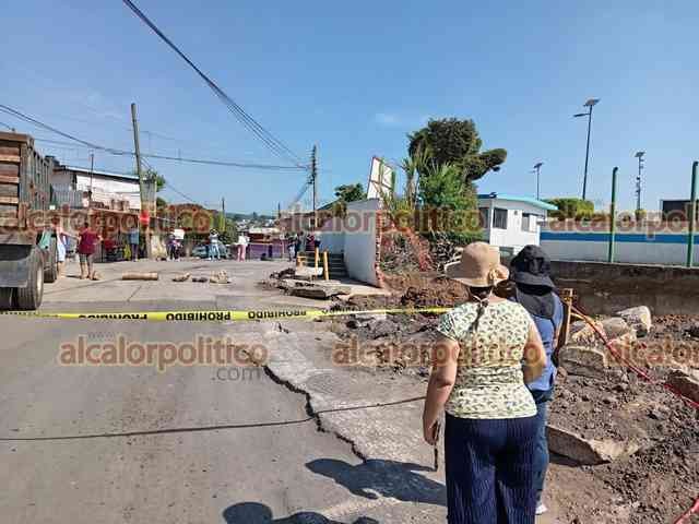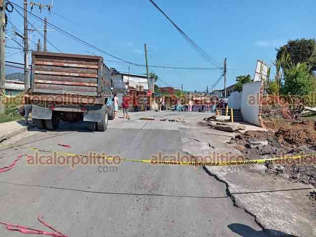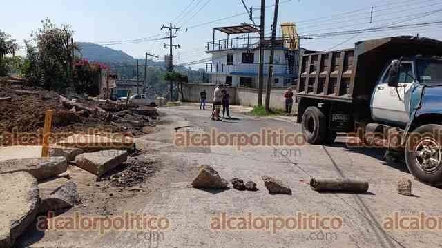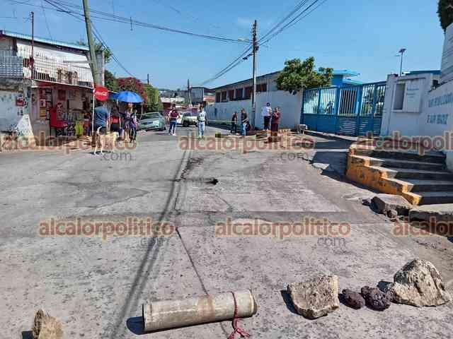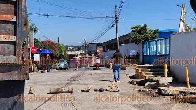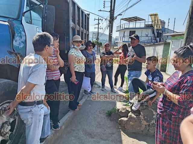 Xalapa, Ver., 26 de abril de 2025.- Vecinos de la avenida Acueducto bloquearon la calle frente a la potabilizadora de agua ante la afectación y riesgo que representa el paso constante de pipas.