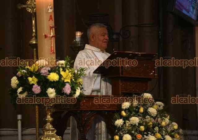 Xalapa, Ver., 27 de abril de 2025.- El párroco de la catedral, José Ignacio Barrera, ofició la misa dominical.