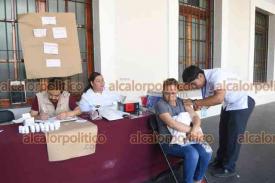 Xalapa, Ver., 28 de abril de 2025.- En Palacio de Gobierno se instaló un módulo de vacunación contra la influenza, sarampión, rubéola y vitamina A. Estarán hasta el sábado.