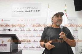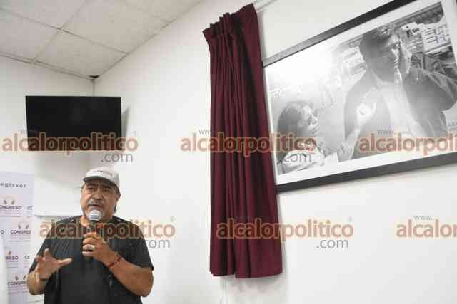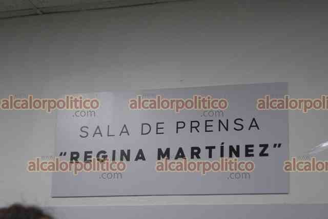 Xalapa, Ver., 28 de abril de 2025.- En la sala de prensa del Congreso de Veracruz se develó una fotografía en memoria de la periodista Regina Martínez, a 13 años de su asesinato. Asistieron sus excompañeros del desaparecido Diario Política y entre otros, hicieron uso de la palabra los periodistas Esaú Valencia y Alberto Morales, conocido como "Betogato".