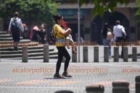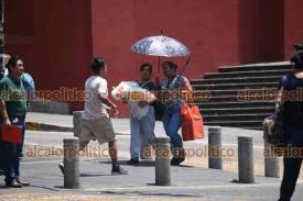 Xalapa, Ver, 7 de mayo de 2025.- Para mitigar el calor y cubrirse del sol, ciudadanos salen con gorros, sombrillas, abanicos, ropa fresca y botellas de agua.
