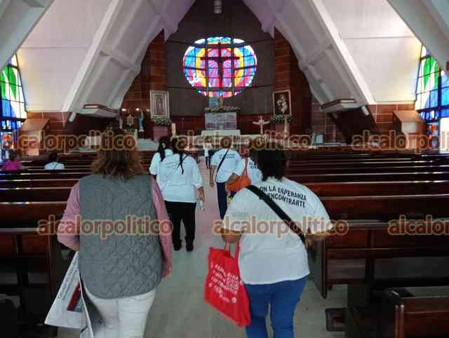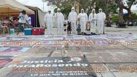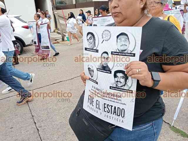 Coatzacoalcos, Ver., 11 de mayo de 2025.- Portando overoles forenses y carteles con el rostro de sus familiares, integrantes de colectivos marcharon la mañana de este sábado por la avenida Ignacio Zaragoza hasta llegar al parque Independencia para concluir con una misa en la catedral de San José.