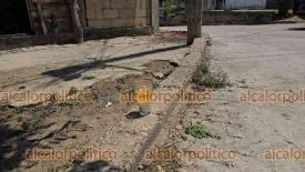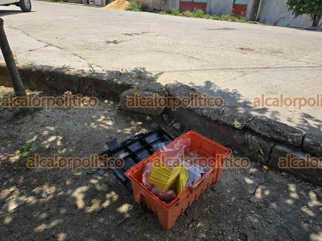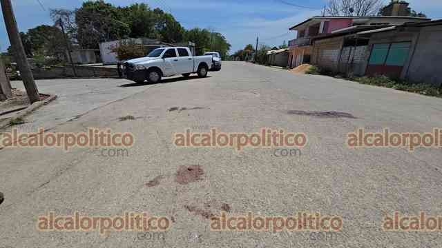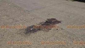 Texistepec, Ver., 12 de mayo de 2025.- Rastros de sangre y una veladora se observan en el cruce de las calles Libertad y Matamoros, en el barrio Camino a Jáltipan, donde la noche de ayer domingo mataron a la candidata morenista Yesenia Lara.