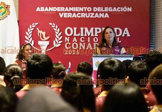 Xalapa, Ver., 13 de mayo de 2025.- La gobernadora Rocío Nahle encabezó la ceremonia de abanderamiento a la selección que participará en la Olimpiada Nacional CONADE 2025.