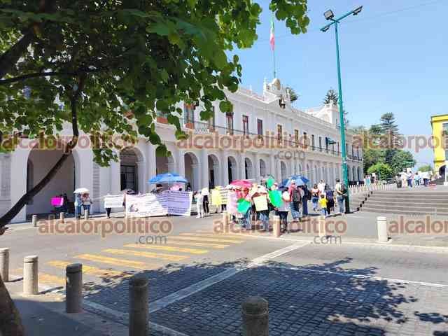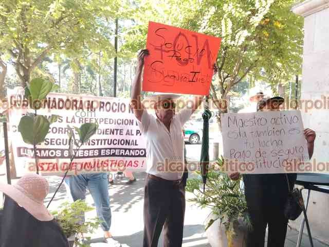 Xalapa, Ver., 15 de mayo de 2025.- Docentes jubilados bloquearon la calle Enríquez, en el centro de la Capital. Exigen al Gobierno Estatal el pago del seguro institucional.