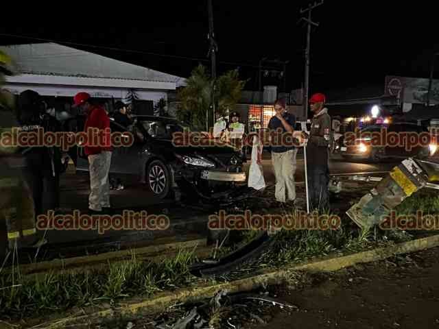 Coatepec, Ver., 17 de mayo de 2025.- Automovilista causa un accidente en el bulevar Xalapa-Coatepec, la noche de este sábado, a la altura de Plaza Orquídeas, conocido también como crucero de La Florida.