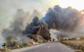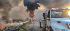 Coatzacoalcos, Ver., 19 de mayo de 2025.- Un gran incendio de pastizales a un costado de la carretera Coatzacoalcos-Minatitlán, en el tramo conocido como Las Matas, provocó el cierre de la circulación, la mañana de este lunes.
