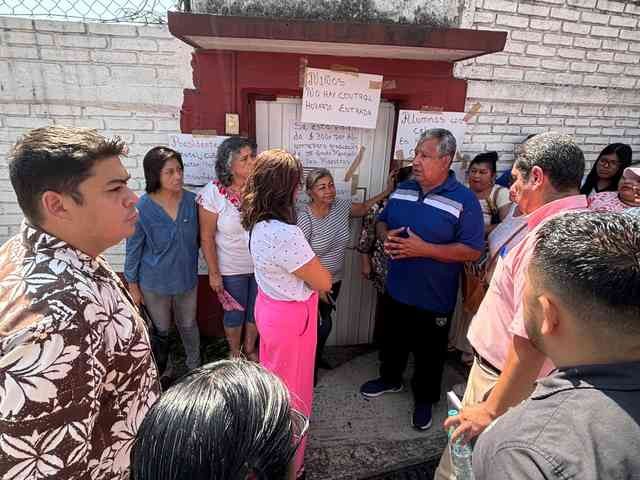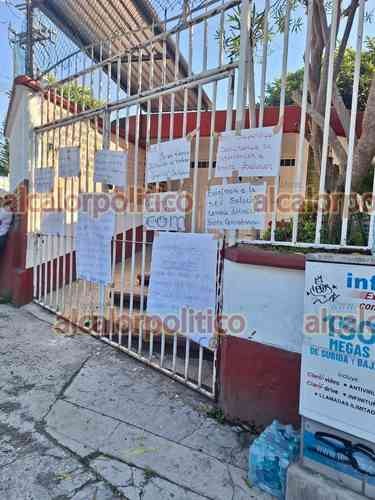 Xalapa, Ver., 20 de mayo de 2025.- “Alumnos con celular en horas de clase”, “Maestras flojean platicando”, son algunas de las leyendas escritas en los carteles colocados en la entrada de la Telesecundaria “Ángel Hermida”.