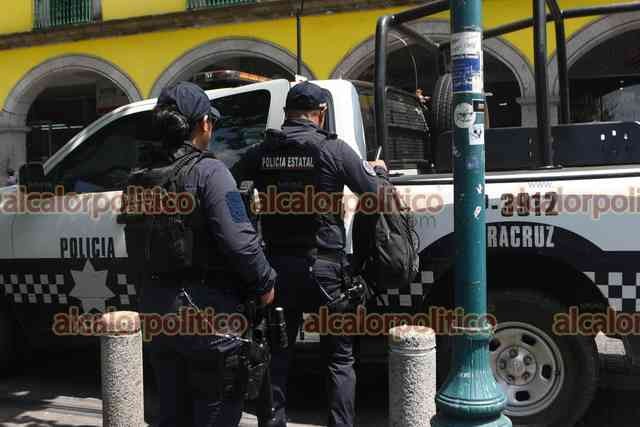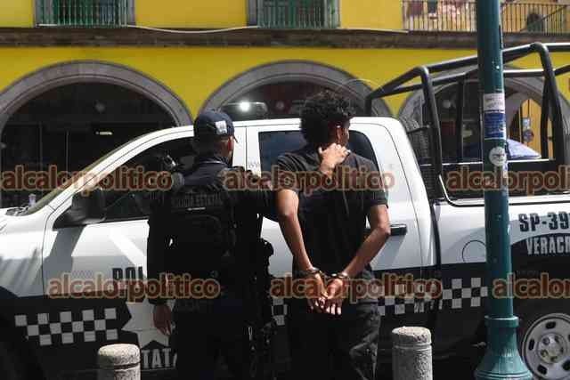 Xalapa, Ver., 21 de mayo de 2025.- Policías estatales detuvieron a un joven en el parque Juárez porque presuntamente llevaba droga en su mochila.