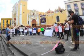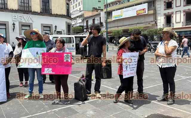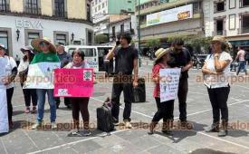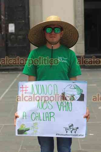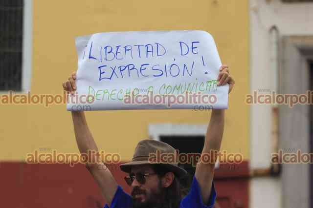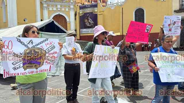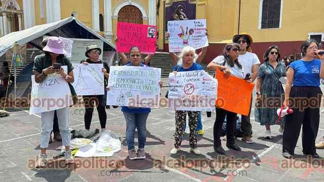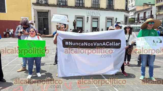 Xalapa, Ver., 7 de junio de 2025.- Ciudadanos y activistas se manifestaron en apoyo a Radio Teocelo. Afirman que la denuncia interpuesta contra la radiodifusora por una candidata de ese municipio es ataque a la libertad de expresión y hostigamiento político.