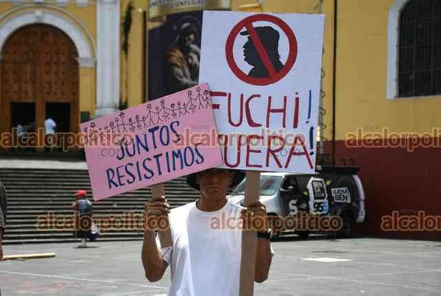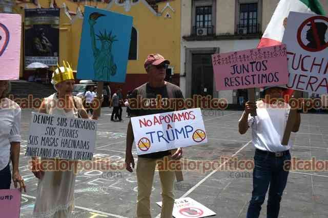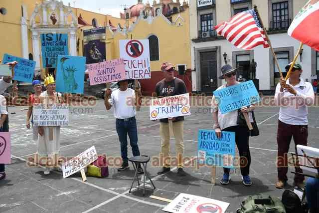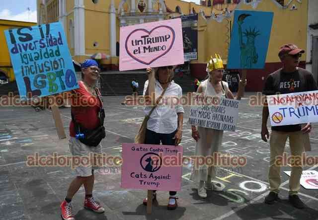 Xalapa, Ver., 8 de junio de 2025.- “Queremos un mundo libre, en paz, no un mundo de puros ricos”, dijeron ciudadanos estadounidenses que radican en la Capital al manifestarse en Plaza Lerdo.
