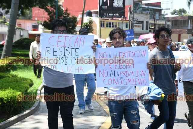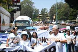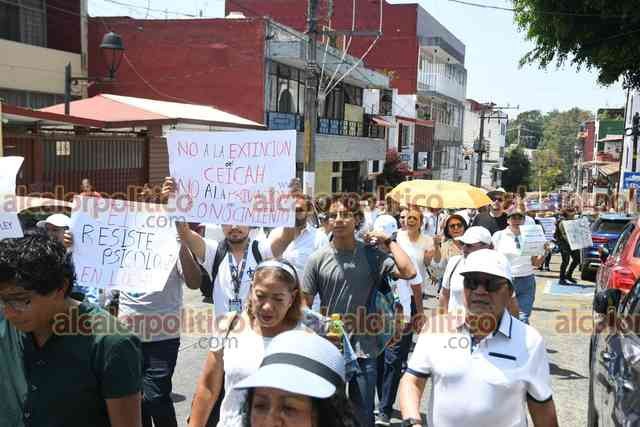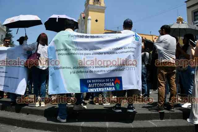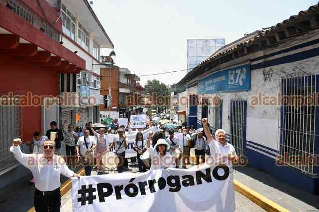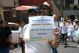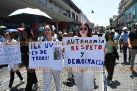 Xalapa, Ver., 9 de junio de 2025.- Tras manifestarse en Rectoría, integrantes de la comunidad UV marcharon hacia el Centro para continuar con sus reclamos contra la prórroga del rector Martín Aguilar. Al llegar a Plaza Lerdo, concluyó la protesta.