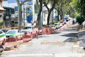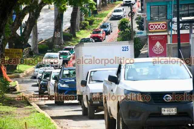 Xalapa, Ver., 13 de junio de 2025.- Por las obras en la avenida Araucarias, fue cerrado el carril en la salida hacia Lázaro Cárdenas, complicando el tráfico en la zona.