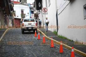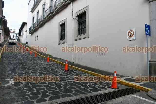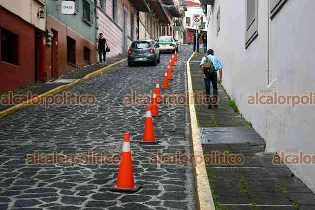 Lector envía imagen del Callejón de Rojas, donde el Ayuntamiento de Xalapa coloca conos naranjas para impedir que se estacionen autos y sugiere que, si no hay otro objetivo, el espacio se podría aprovechar para estacionamiento de motocicletas que las meten entre los autos y generan otro tipo de problemas.