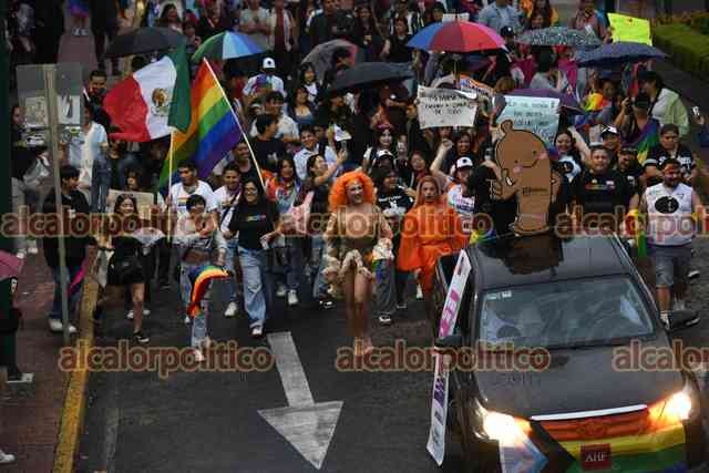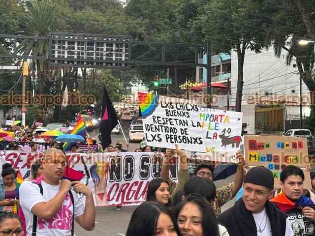 Xalapa, Ver., 14 de junio de 2025.- Integrantes de las disidencias sexuales marchan del Teatro del Estado a Plaza Lerdo para exigir igualdad de derechos. “No es una fiesta, es una protesta”, gritan al unísono, recordando que el orgullo también es resistencia.