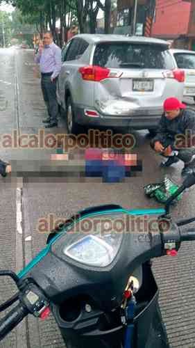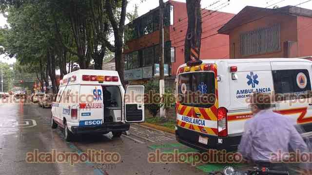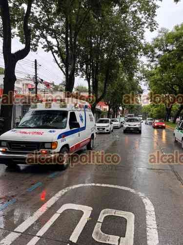 Xalapa, Ver., 16 de junio de 2025.- En la avenida Ruiz Cortines, motociclista resultó lesionado al impactarse por alcance contra camioneta particular. Fue atendido por elementos del Grupo SRUE Scorpión y Protección Civil.