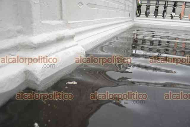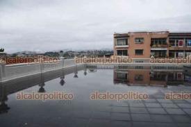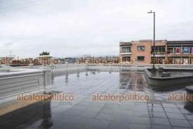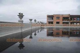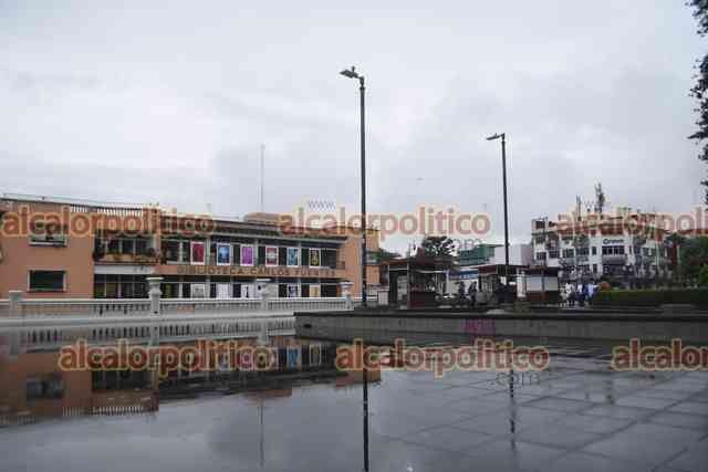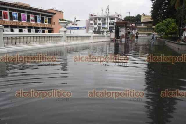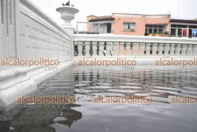 Xalapa, Ver., 17 de junio de 2025.- Por las lluvias, parte del mirador del Parque Juárez se inundó, pese a que recientemente esta área fue rehabilitada.