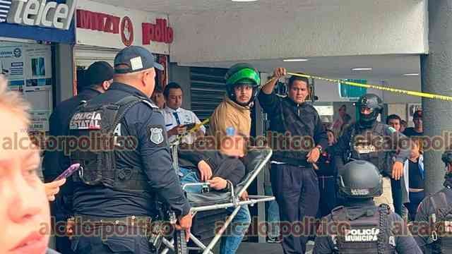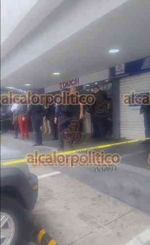 Xalapa, Ver., 17 de junio de 2025.- Movilización policiaca en inmediaciones de Plaza Crystal por asalto a cuentahabientes que habrían retirado fuerte suma de dinero de sucursal bancaria. Se habla de 2 personas lesionadas por arma de fuego.