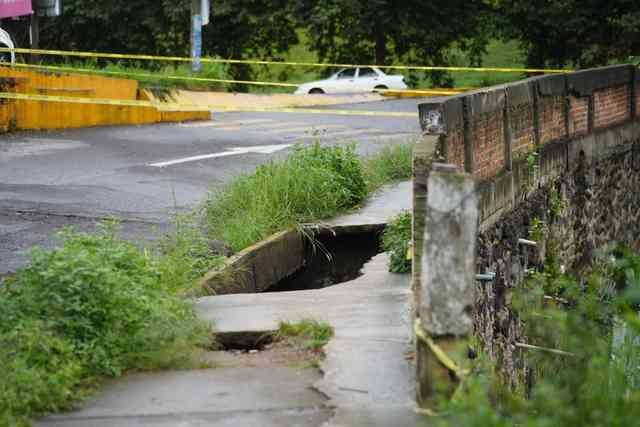 Xalapa, Ver., 18 de junio de 2025.- Debido a que se formó un socavón, fue cerrado el carril que incorpora hacia la unidad habitacional La Ciénega, en la carretera Las Trancas-Coatepec.
