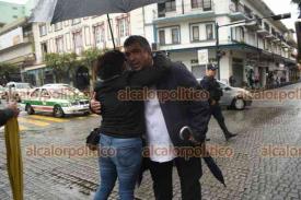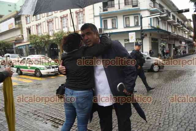 Xalapa, Ver., 19 de junio de 2025.- Al bloqueo de estudiantes y padres de familia en la calle Enríquez y Lucio, arribó el exdirector del Colegio Preparatorio, Luis Manuel González.