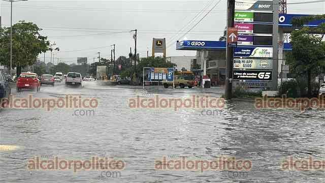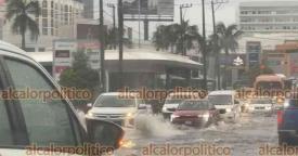 Veracruz, Ver., 19 de junio de 2025.- Las lluvias torrenciales que se han presentado este jueves en la conurbación ha dejado calles y zonas inundadas afectando a automovilistas y ciudadanos.