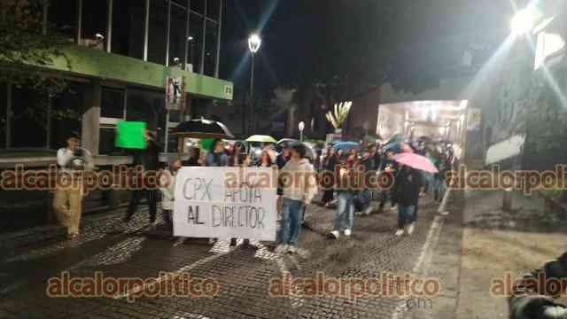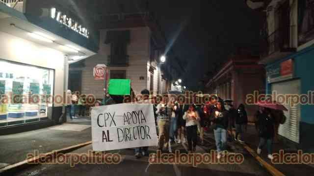 Xalapa, Ver., 20 de junio de 2025. Portando velas, y en silencio, estudiantes del Colegio Preparatorio, acompañados por padres y algunos ciudadanos marcharon en apoyo de Luis Manuel González, recientemente cesado como Director, a quien consideran un pilar en su desarrollo académico.